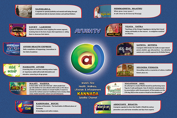 - Ayush tv is the only kannada channel on health having 100% reach to cable households, 80% reach on DTH platform, 30% reach on OTT platforms, and well connected on the social media platforms,live web streaming, and through its Ground events.